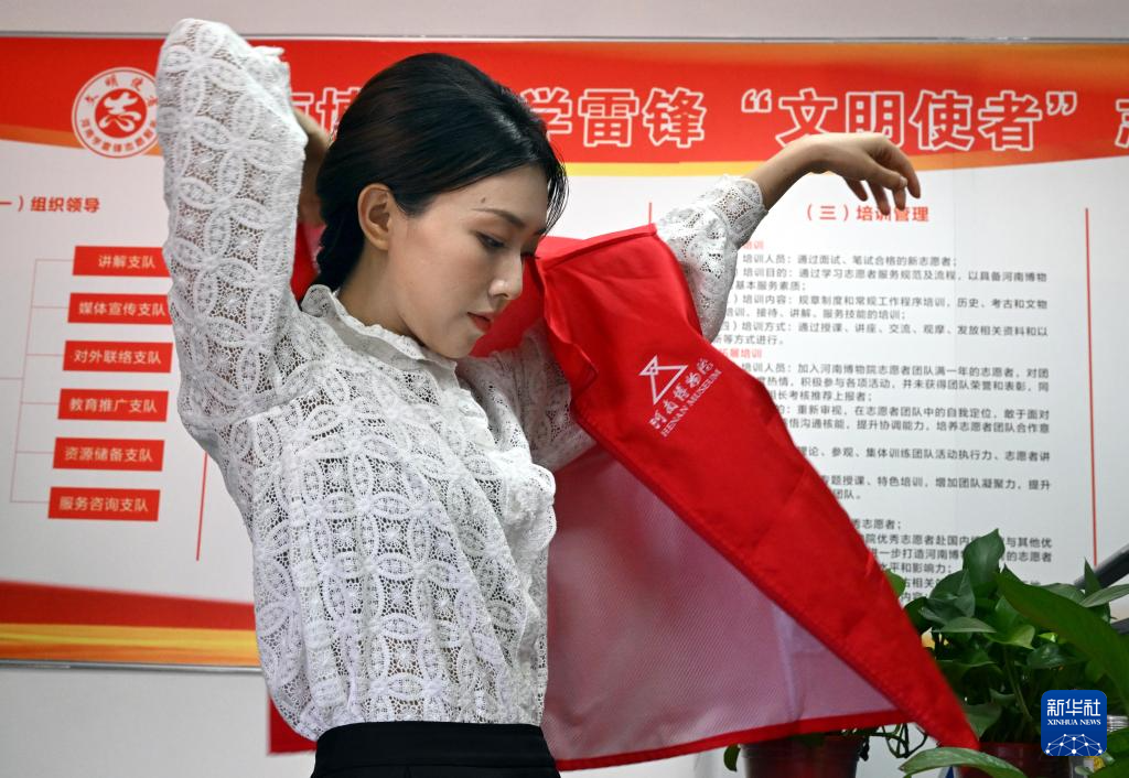 4月26日,河南博物院志愿者覃妍洁穿上志愿者马甲。