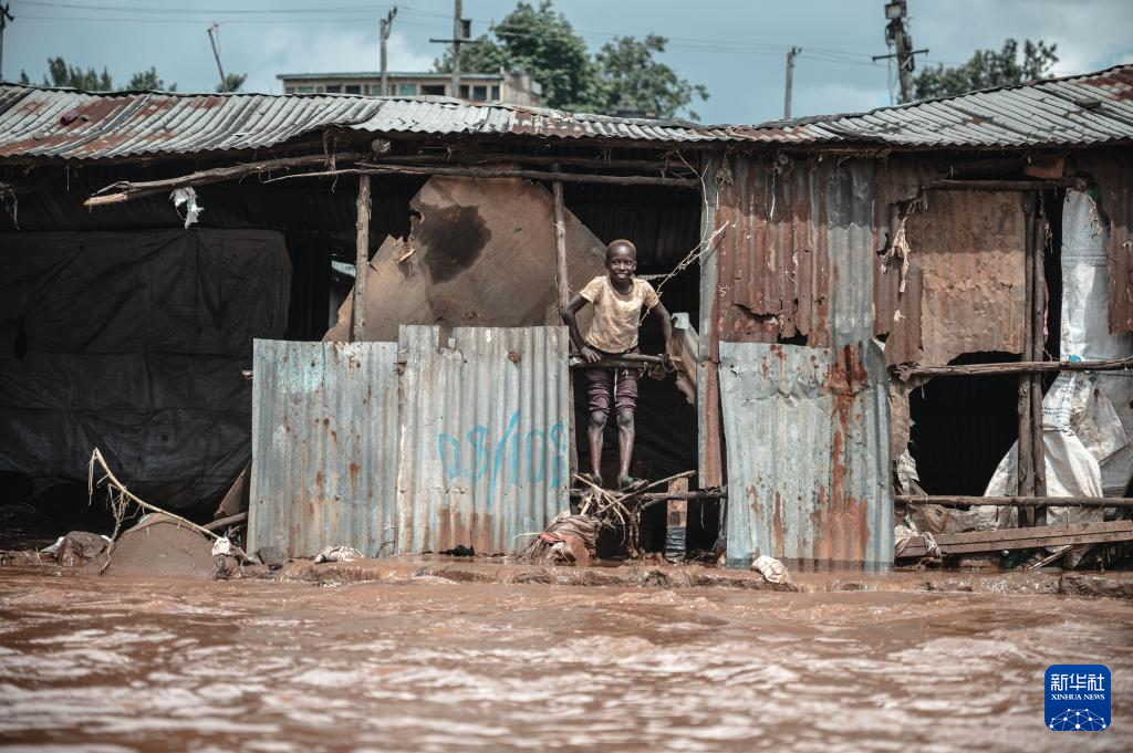 这是4月30日在肯尼亚首都内罗毕的马萨雷贫民区拍摄的洪水泛滥的区域。