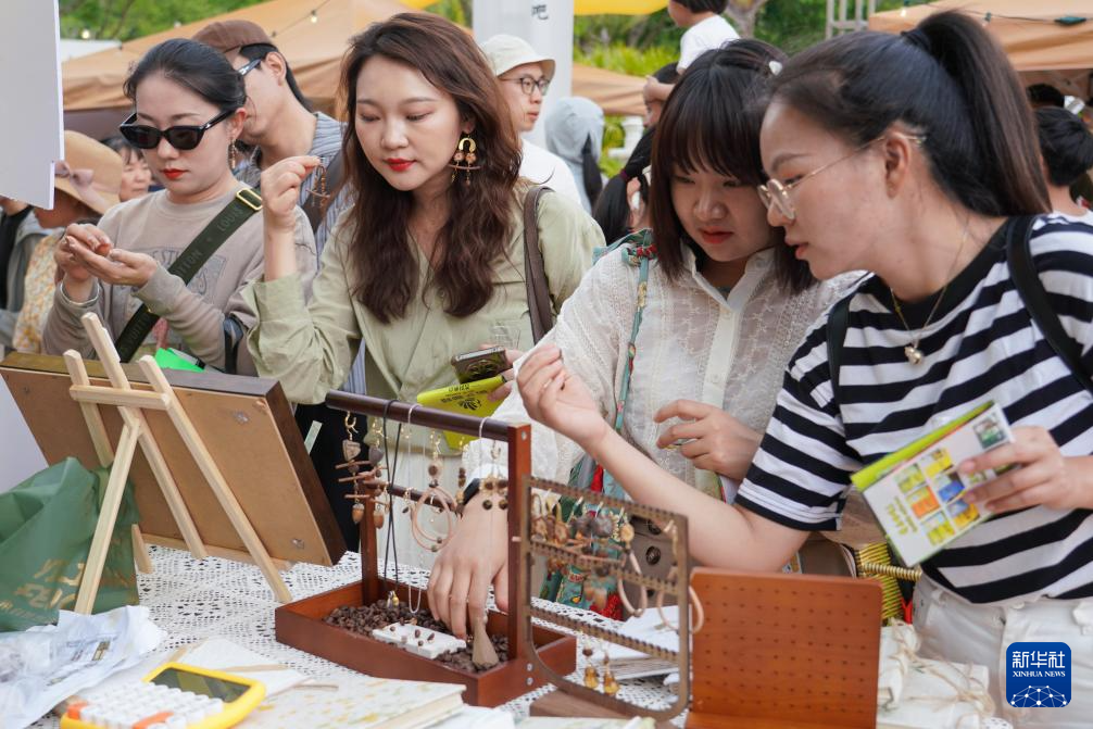 5月1日,参观者观赏用咖啡豆做成的饰品。