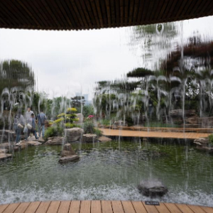 5月1日,游客在成都世园会主会场长沙园里游览。