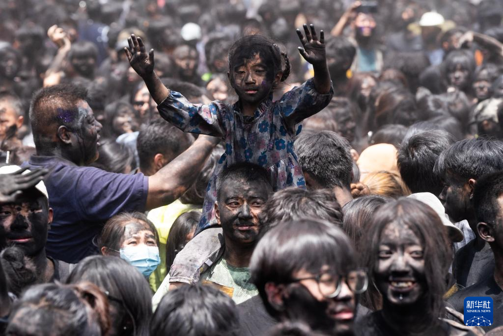 5月3日,民众在云南省墨江哈尼族自治县参加“抹黑脸”民俗活动。