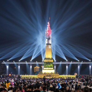 “五一”假期,精彩纷呈的哈尔滨松花江光影秀在哈尔滨防洪纪念塔广场上演,吸引众多市民和游客前来观赏。