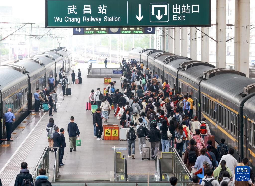 5月5日,旅客在湖北武昌站准备乘车出行。