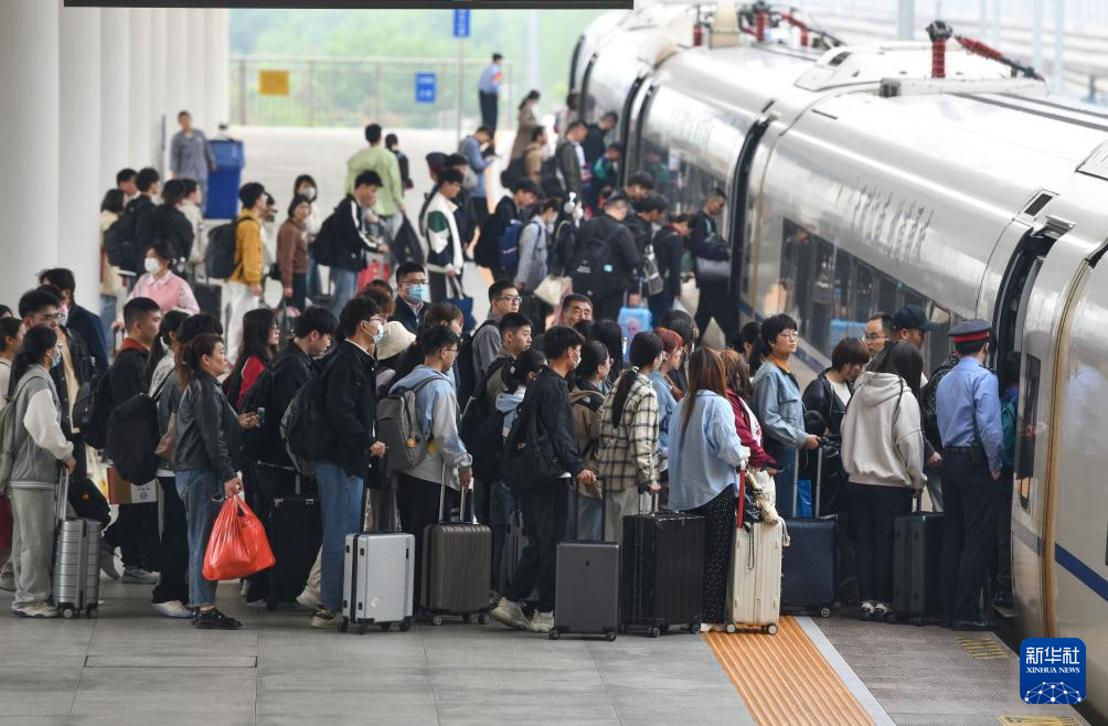 5月5日,旅客在南京火车站乘车出行。