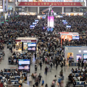 5月5日,旅客在安徽阜阳西站排队乘车。