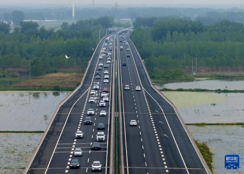 5月5日,车辆行驶在扬州市新扬高速公路上(无人机照片)。