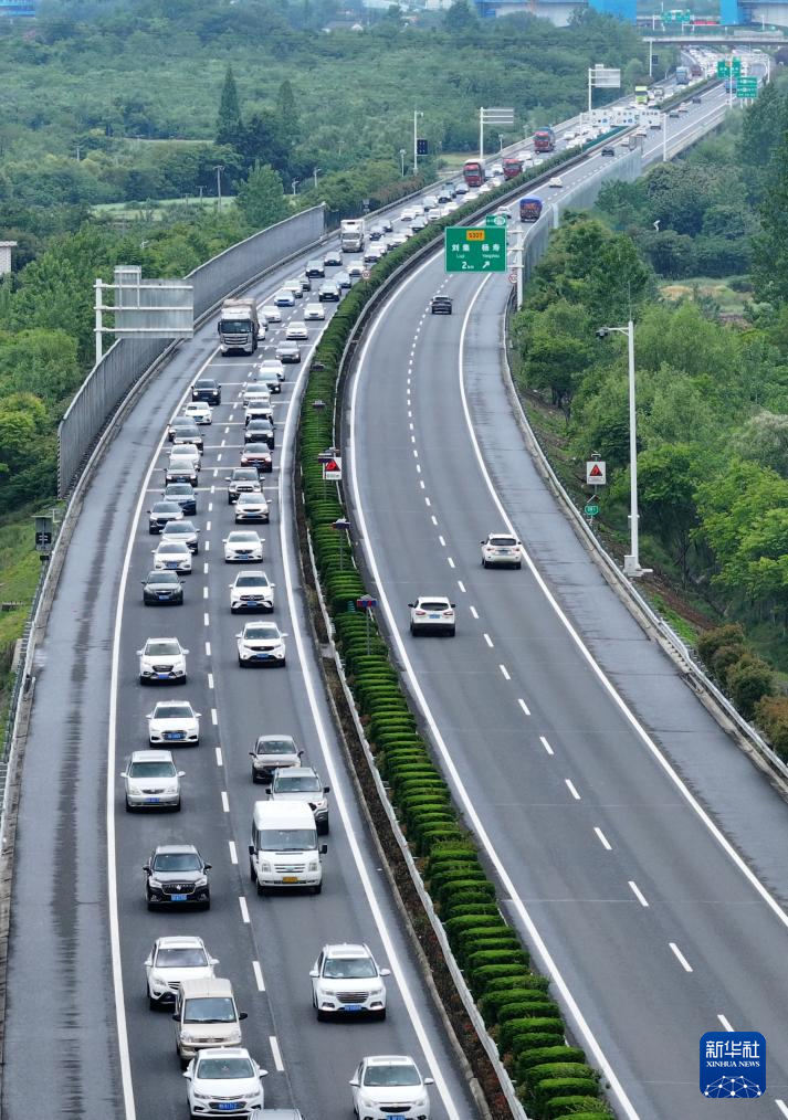 5月5日,在盐洛高速江苏淮安段,车辆在有序行驶(无人机照片)。