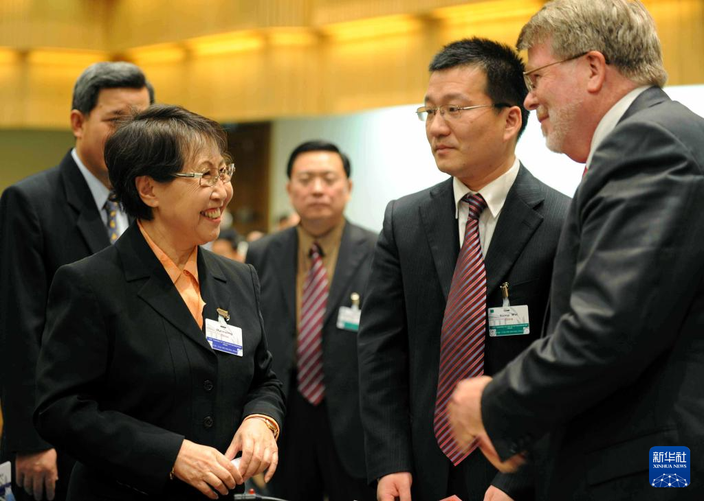 2009年4月6日,在埃塞俄比亚首都亚的斯亚贝巴举行的各国议会联盟(议联)第120届大会期间,率中国全国人大代表团出席会议的乌云其木格同志与澳大利亚联邦众议院议长詹金斯(右)交谈。