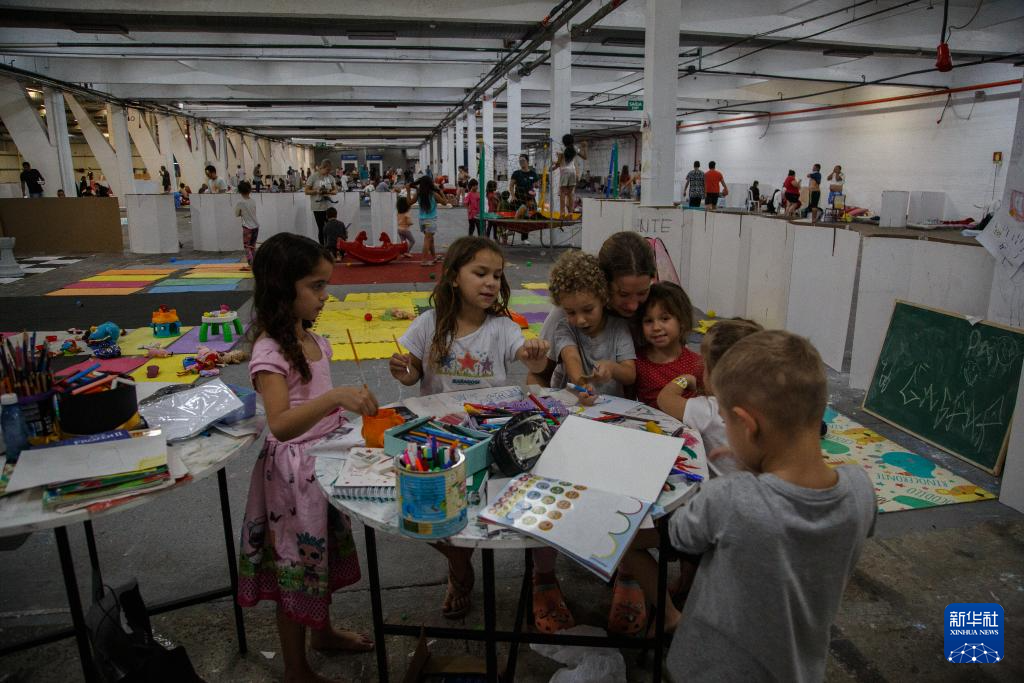 5月6日,在巴西南里奥格兰德州新汉堡,儿童在避难所内玩耍。