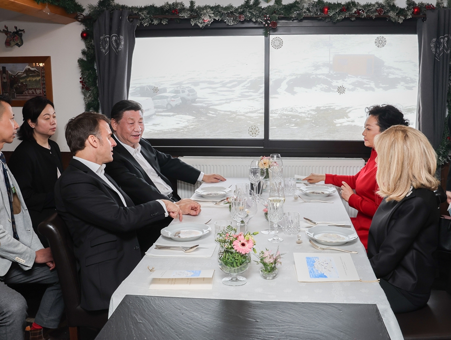 当地时间5月7日,应法国总统马克龙特别邀请,国家主席习近平乘专机来到法国西南部上比利牛斯省访问。在图尔马莱山口“牧羊人驿站”,习近平和夫人彭丽媛同马克龙和夫人布丽吉特凭窗而坐,在轻松愉快的氛围中就一些重要问题进行战略沟通。