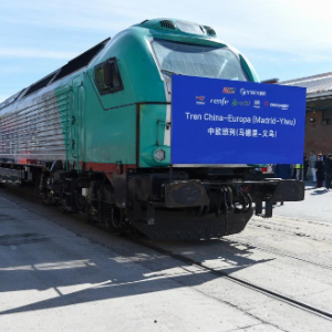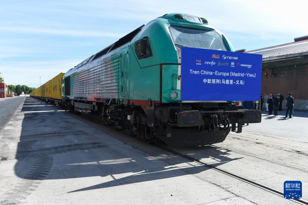 当日,中欧班列(义乌—马德里)开行十周年纪念号班列发车仪式在西班牙首都马德里举行,百余名嘉宾参加发车仪式并参观班列开行十周年成果展。该纪念号班列8日从马德里鸣笛发车,驶往中国义乌。