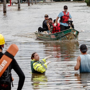 5月8日,在巴西南里奥格兰德州卡诺阿斯,救援人员帮助当地居民转移。