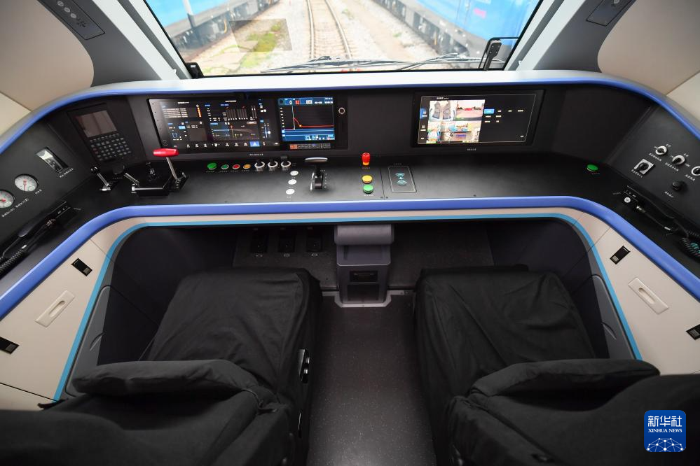 这是5月9日拍摄的国内首台新型智能重载电力机车的智能座舱一角。