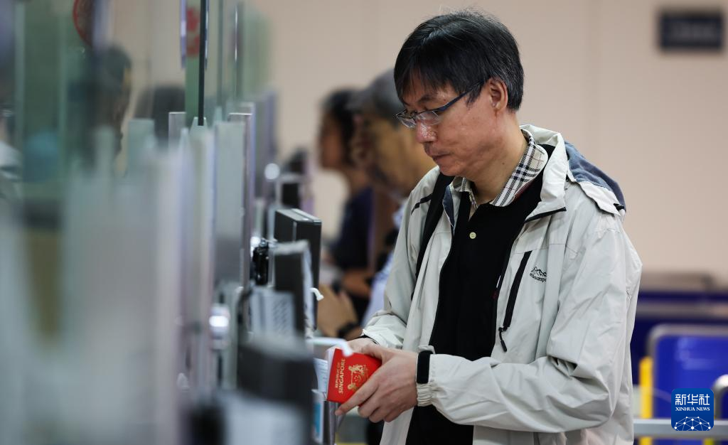 5月9日,入境旅客在海口美兰边检站办理边检手续。