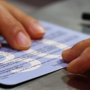 5月9日,海口美兰边检站民警为入境旅客发放温馨提示卡,为入境旅客提醒注意事项。