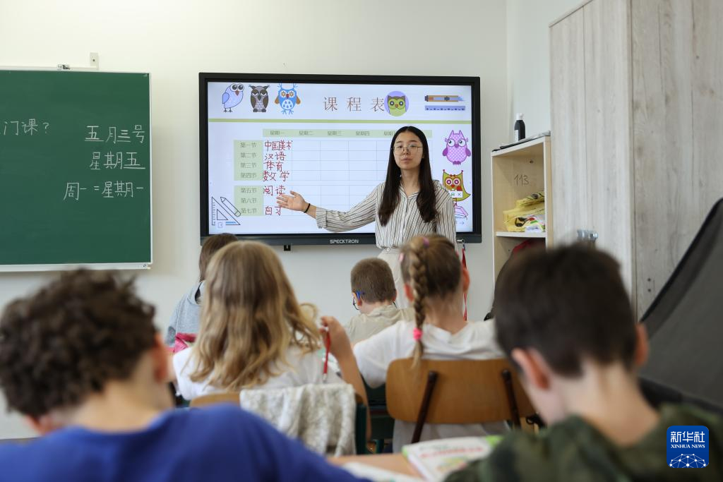 5月3日,在匈牙利布达佩斯,匈中双语学校三年级的孩子们上中文课。