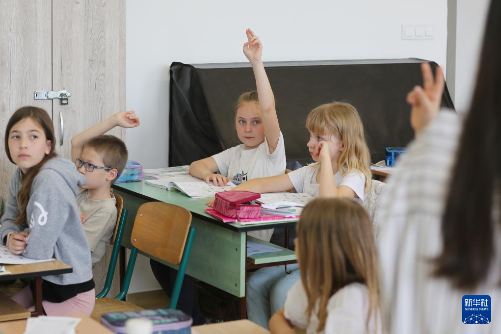 5月3日,在匈牙利布达佩斯,匈中双语学校三年级的孩子们在中文课上举手回答问题。
