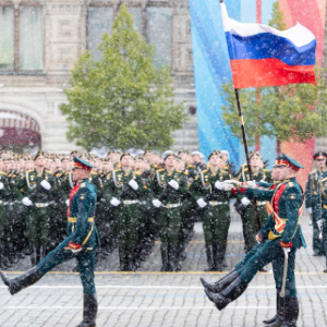 5月9日,在俄罗斯首都莫斯科,俄罗斯国旗入场。