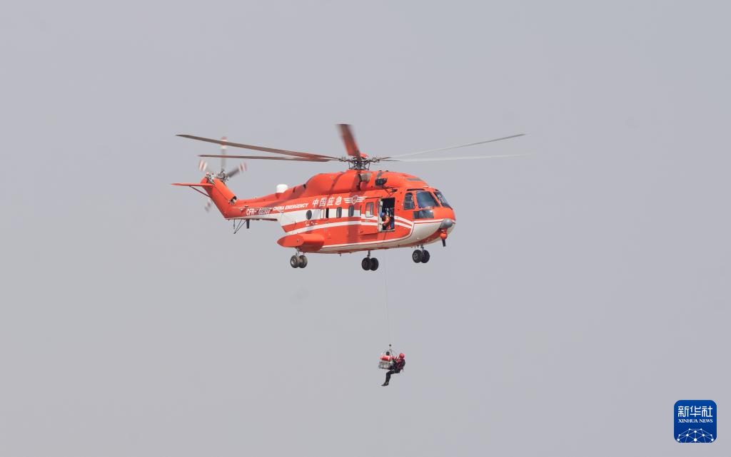 5月10日,在浙江金华主演习场,参演人员开展直升机搜救演习。
