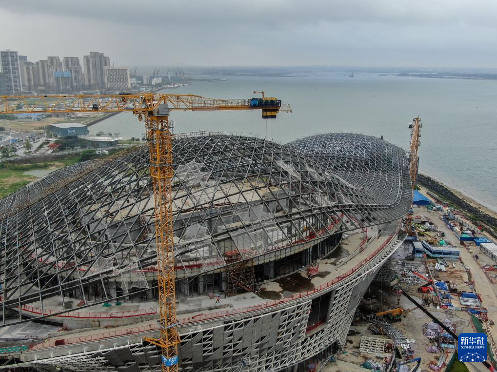 湛江文化中心三面环海,包括大小剧院、美术馆、博物馆等功能区域,建成后将成为湛江文化新地标。