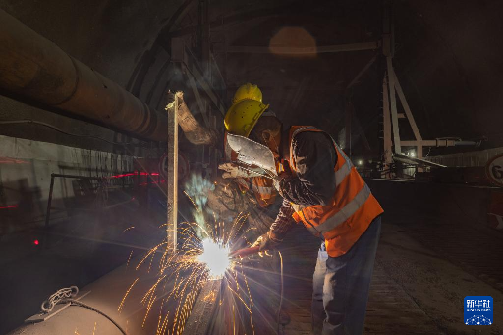 5月9日,在中铁十二局承建的西渝高铁康渝段东大巴山隧道出口施工现场,工人在进行焊接作业。