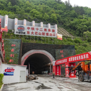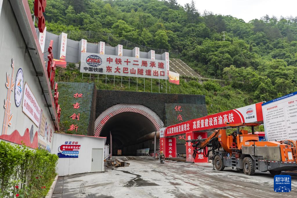 5月9日在中铁十二局承建的西渝高铁康渝段东大巴山隧道出口拍摄的施工现场。