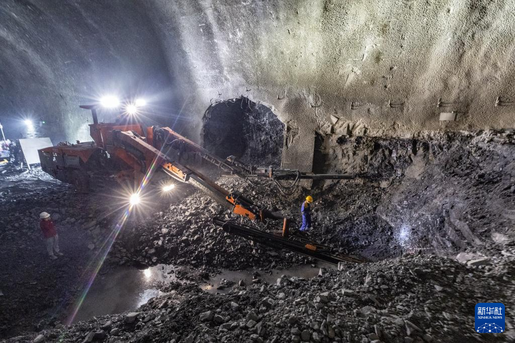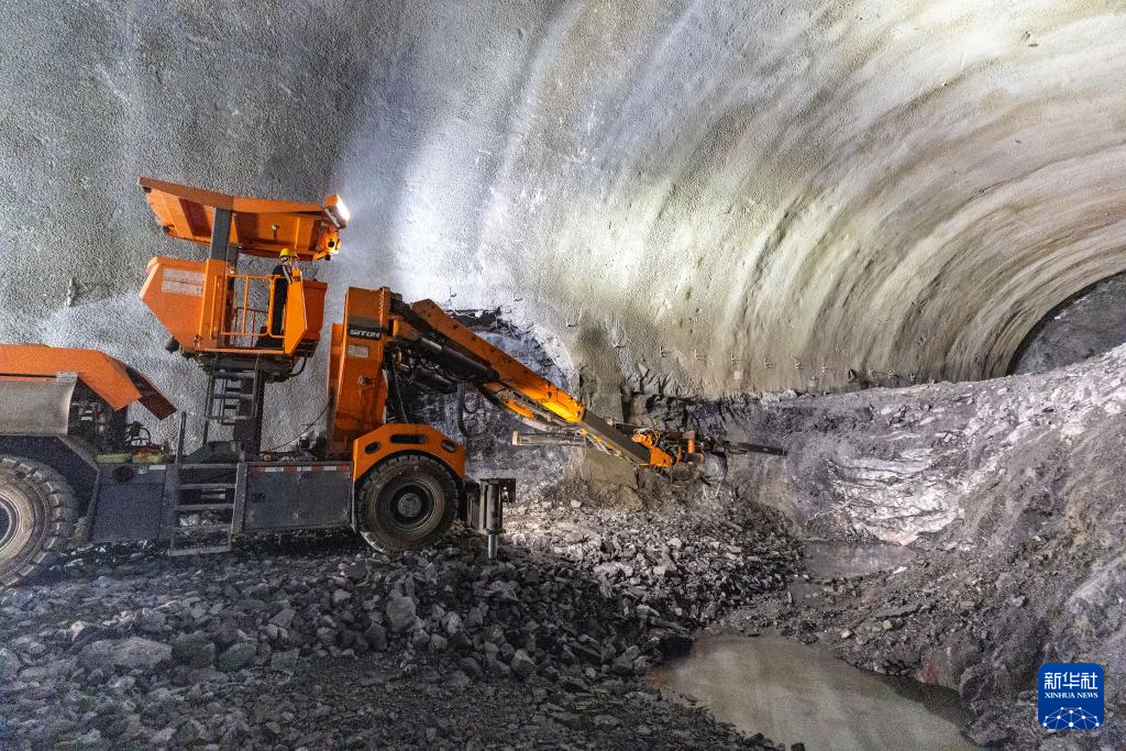 5月9日,在中铁十二局承建的西渝高铁康渝段东大巴山隧道出口施工现场,工人在操作机械化设备作业。