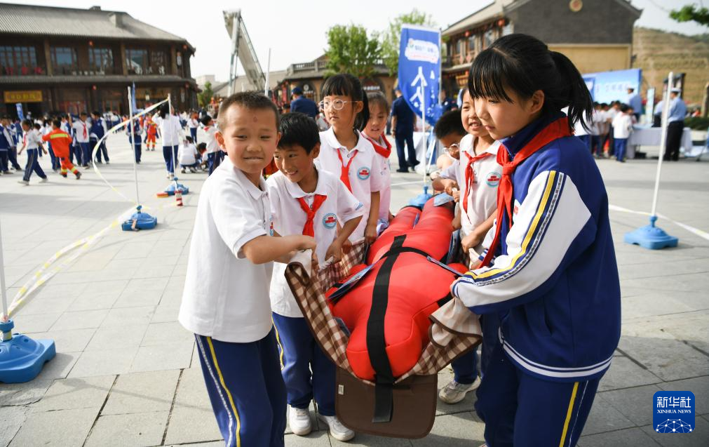 5月10日,在陕西省延安市,学生体验应急处置措施。