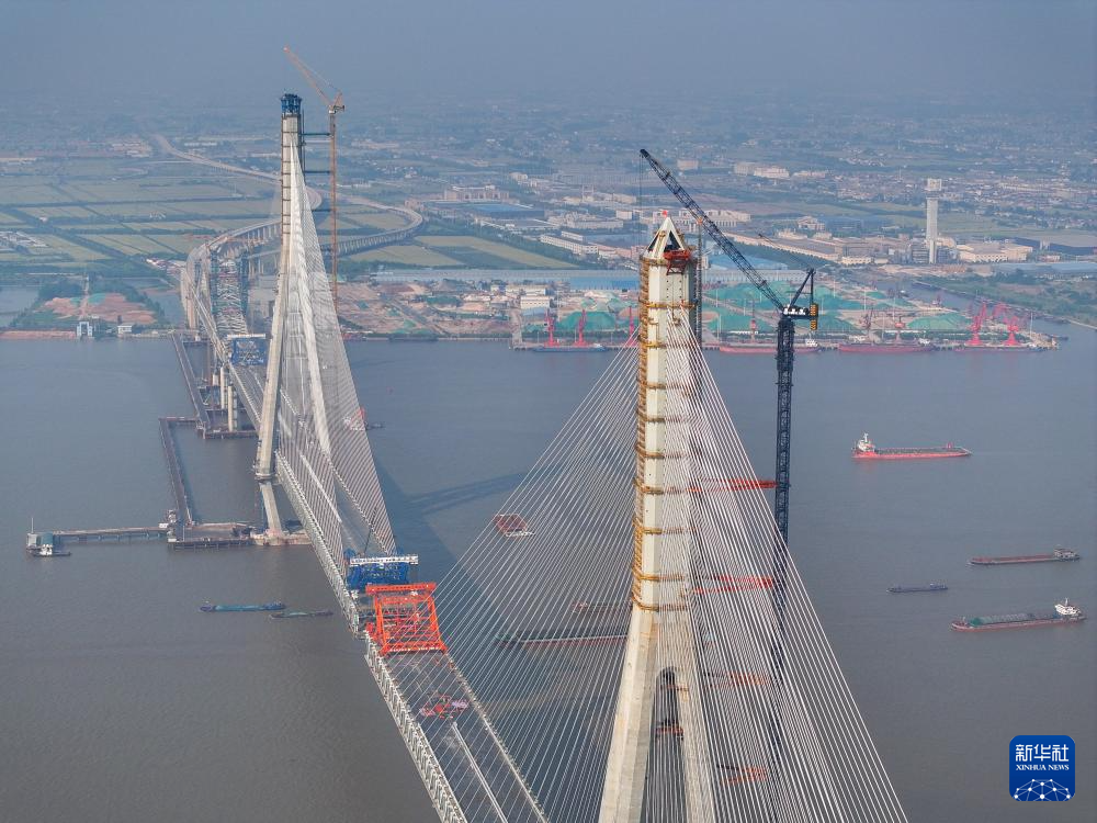 这是中铁宝桥集团有限公司参建的常泰长江大桥施工现场(5月10日摄)。