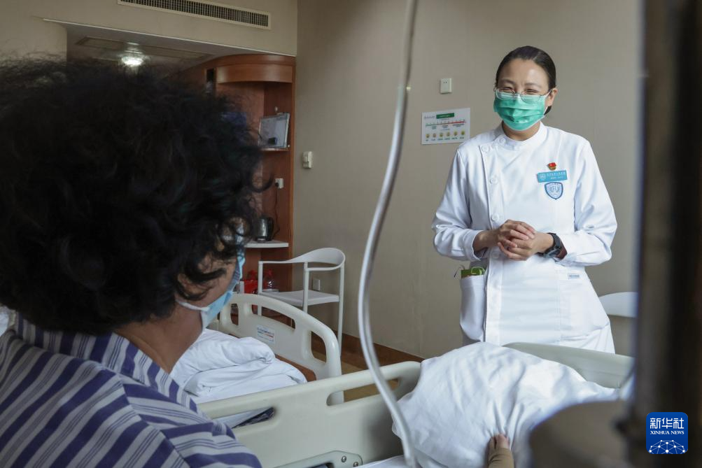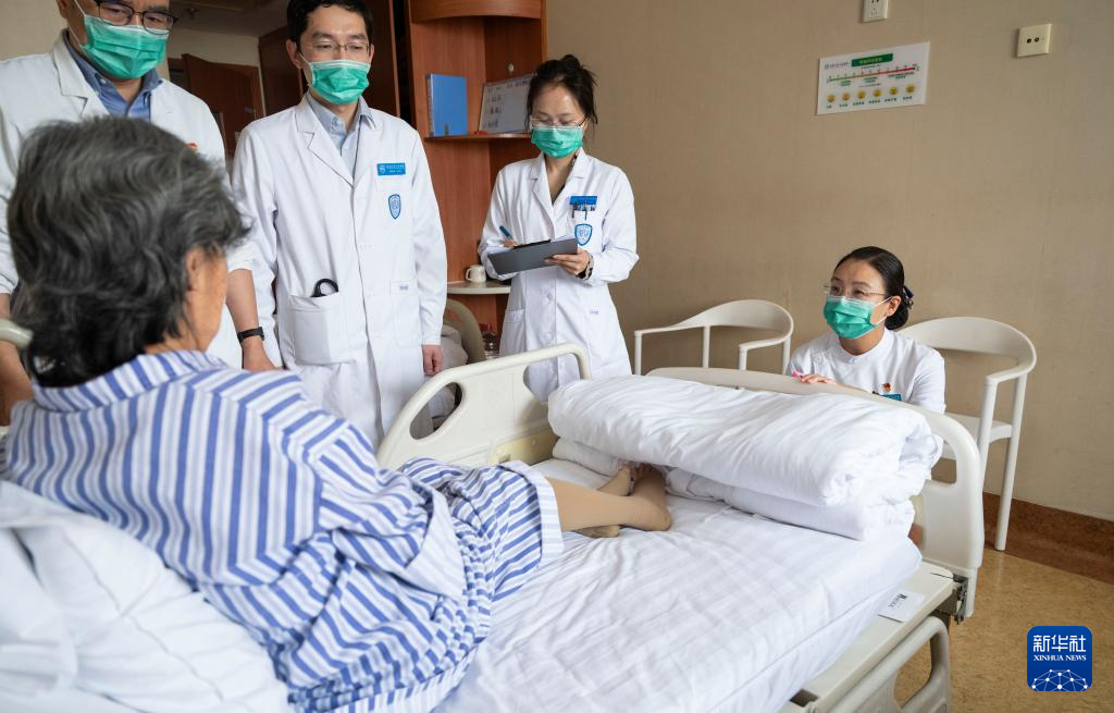 5月10日,樊榕榕在病房和术后病人交谈,讲解注意事项。