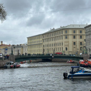这是5月10日在俄罗斯圣彼得堡拍摄的公共汽车坠河现场(手机拍摄)。
