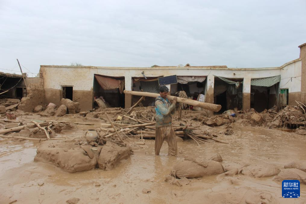 5月11日,在阿富汗巴格兰省巴格兰尼马尔卡济区,人们在受洪水影响的区域进行清理工作。