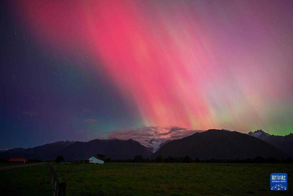 这是5月11日晚在新西兰南岛西海岸福克斯冰川附近拍摄的极光。