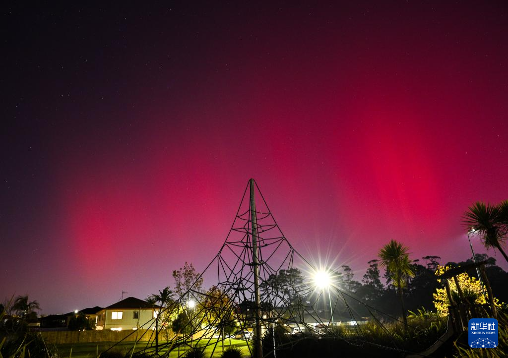 这是5月11日晚在新西兰奥克兰北部拍摄的极光。