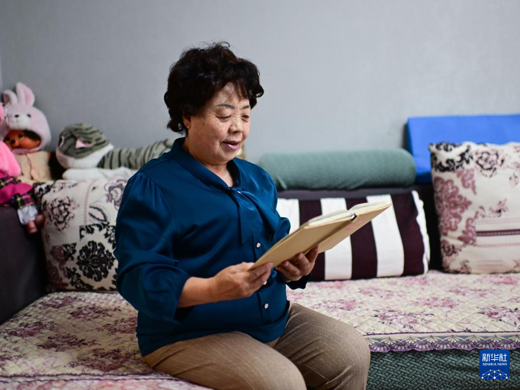 5月10日,刘慧君的母亲陶延瑛在家中翻阅自己的护理笔记。