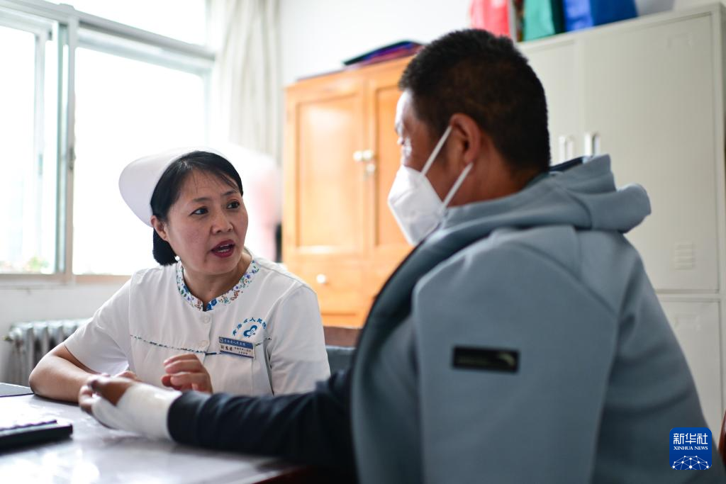 5月10日,青海省人民医院伤口造口专科护理门诊主管护师刘慧君在嘱咐患者。