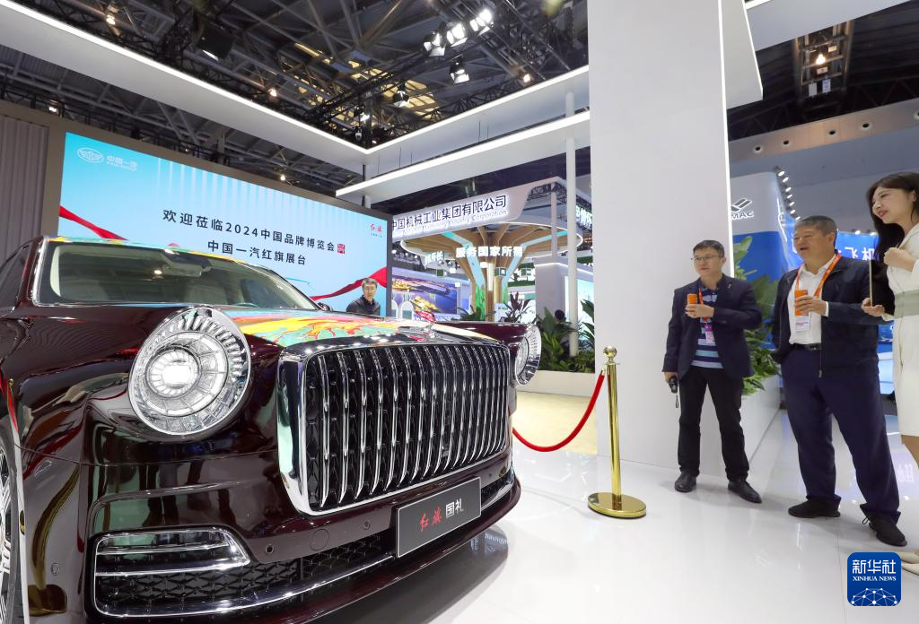 5月11日,参观者在红旗国礼轿车前驻足。