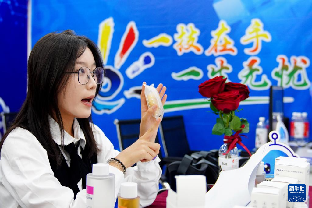 5月11日,在济南舜耕国际会展中心,来自济南信息工程学校的学生在展示直播技能。
