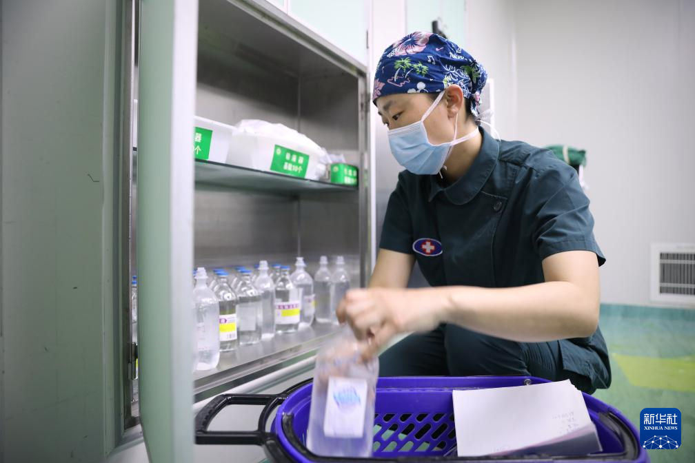 5月8日,董永鑫在恩良医院手术室手术间内放入手术备用药品。新华社记者 姚剑锋 摄pagebreak