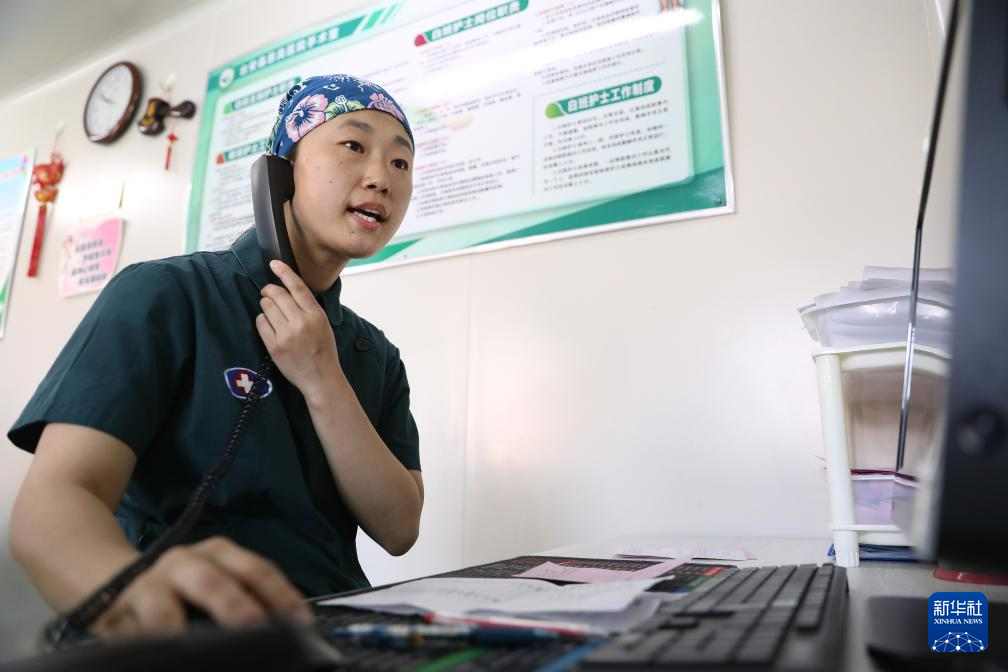 5月8日,董永鑫在恩良医院手术室办公室内和医院药局联络手术药品需求。新华社记者 姚剑锋 摄pagebreak