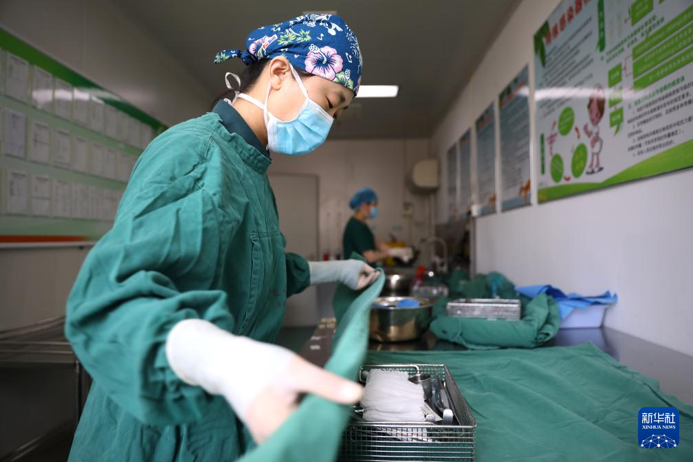5月9日,董永鑫在恩良医院手术室打包间内打包待消毒的手术器械。新华社记者 姚剑锋 摄pagebreak
