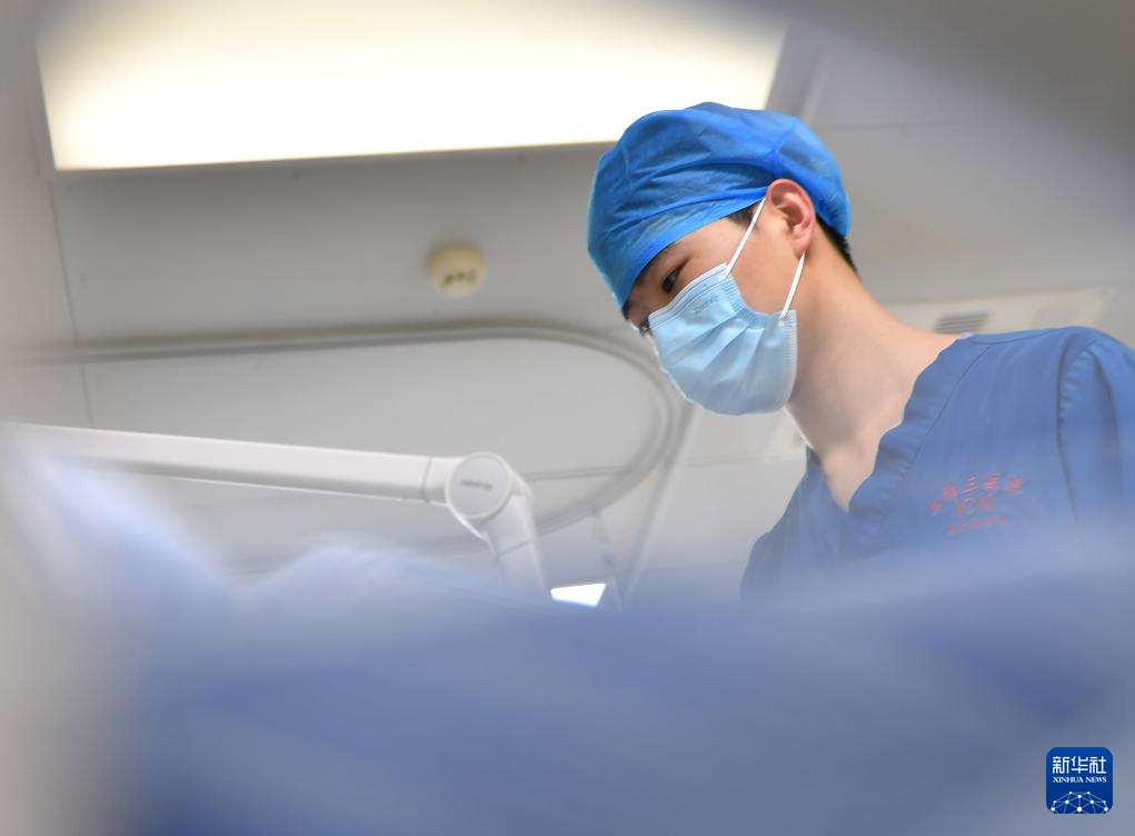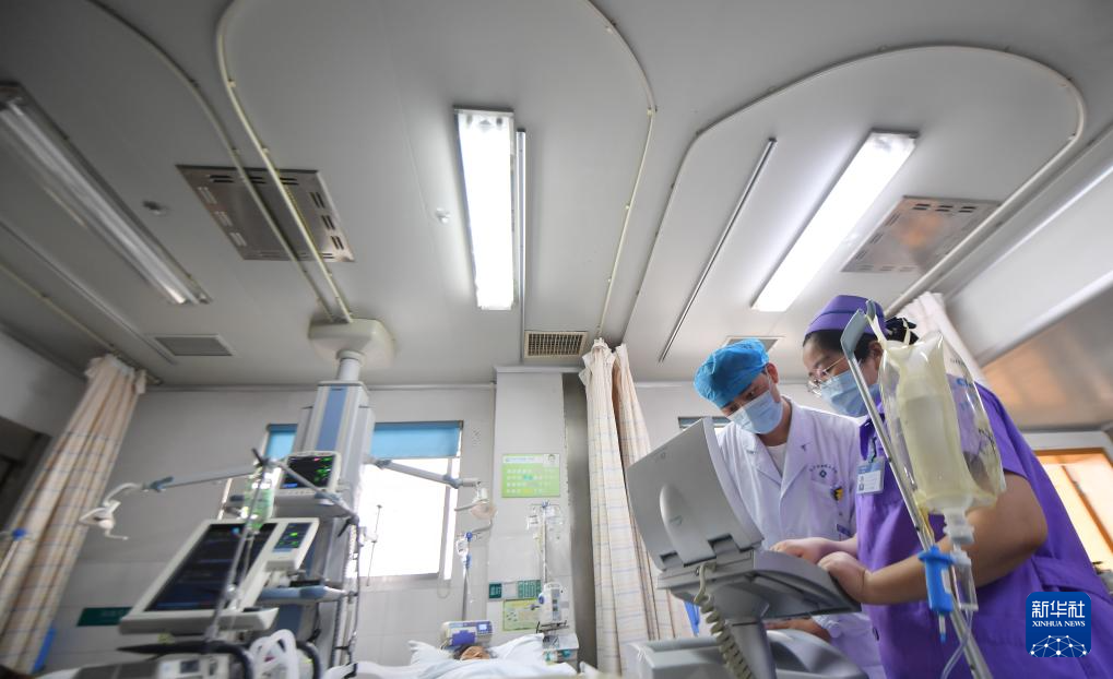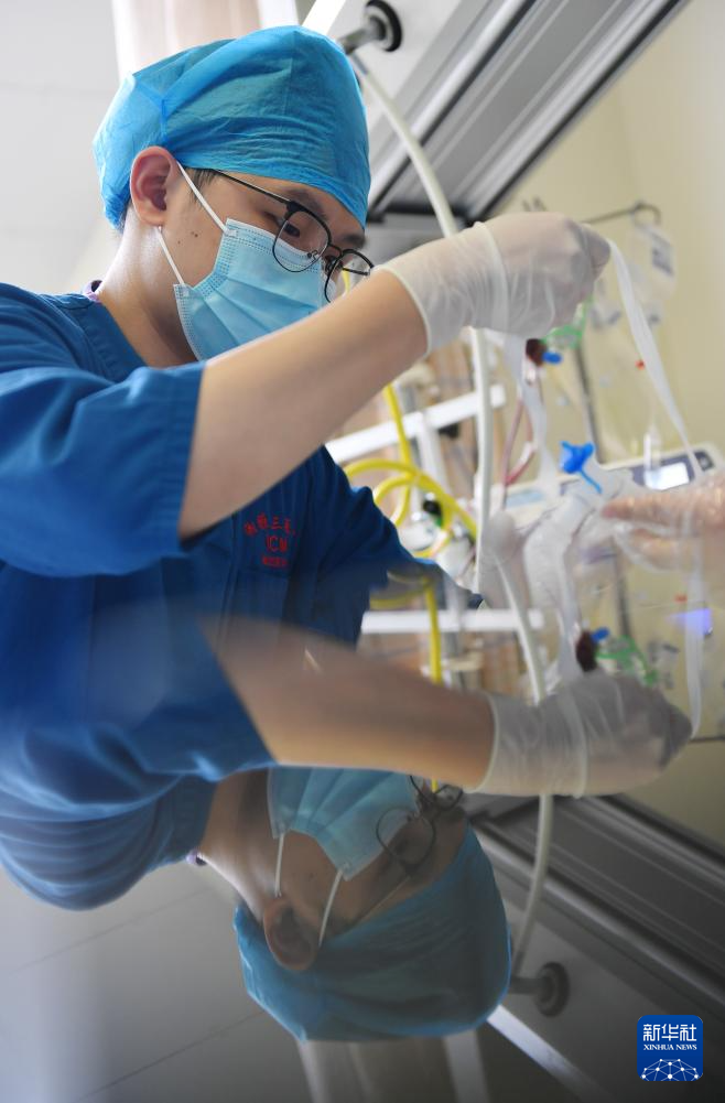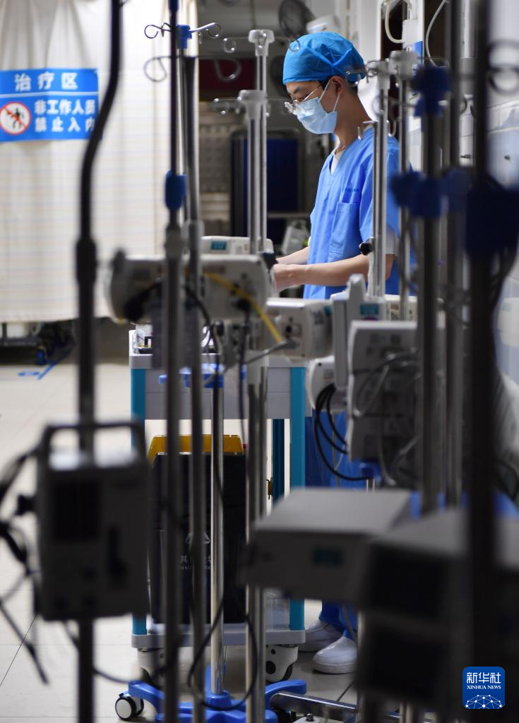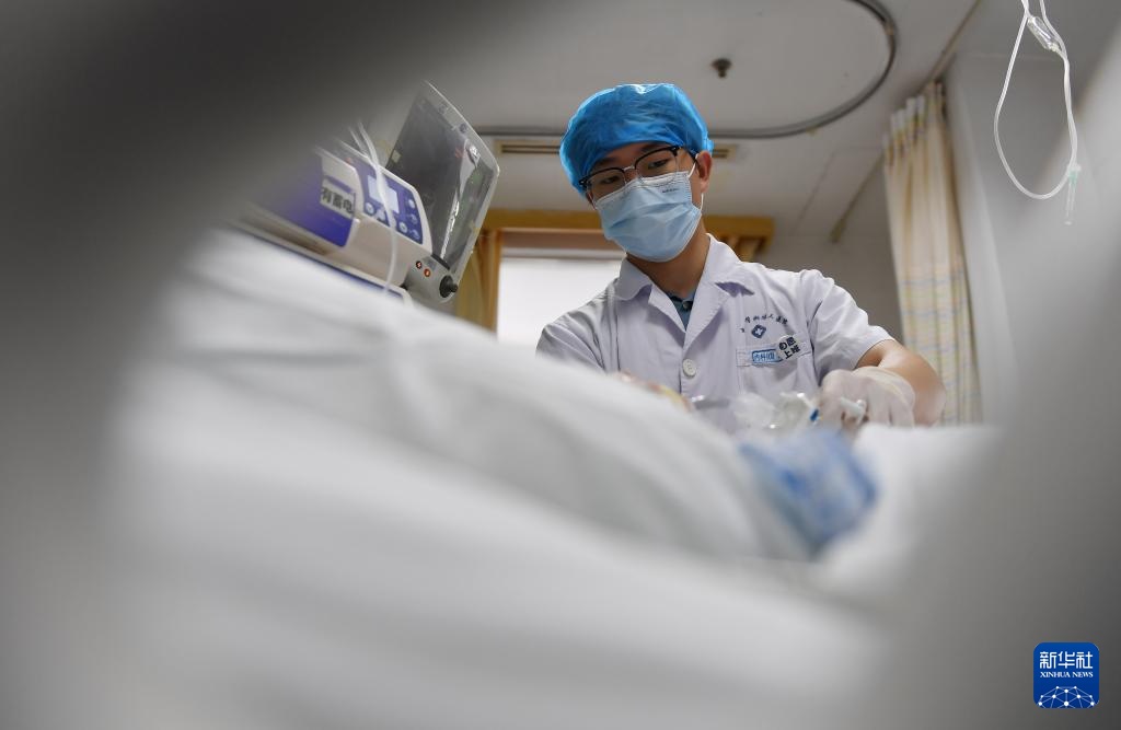 5月10日,卿雯杰在内科重症监护室护理患者。