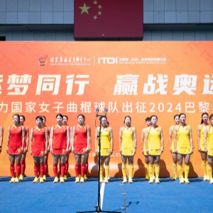当日,中国国家女子曲棍球队2024巴黎奥运会出征仪式在国家奥林匹克体育中心举行。