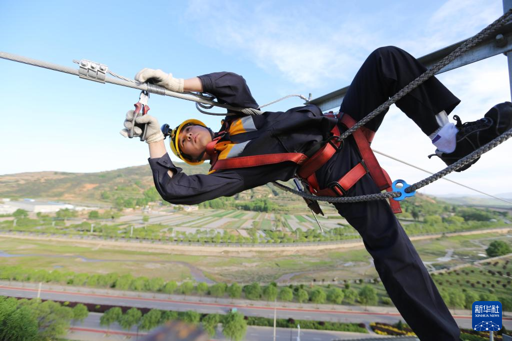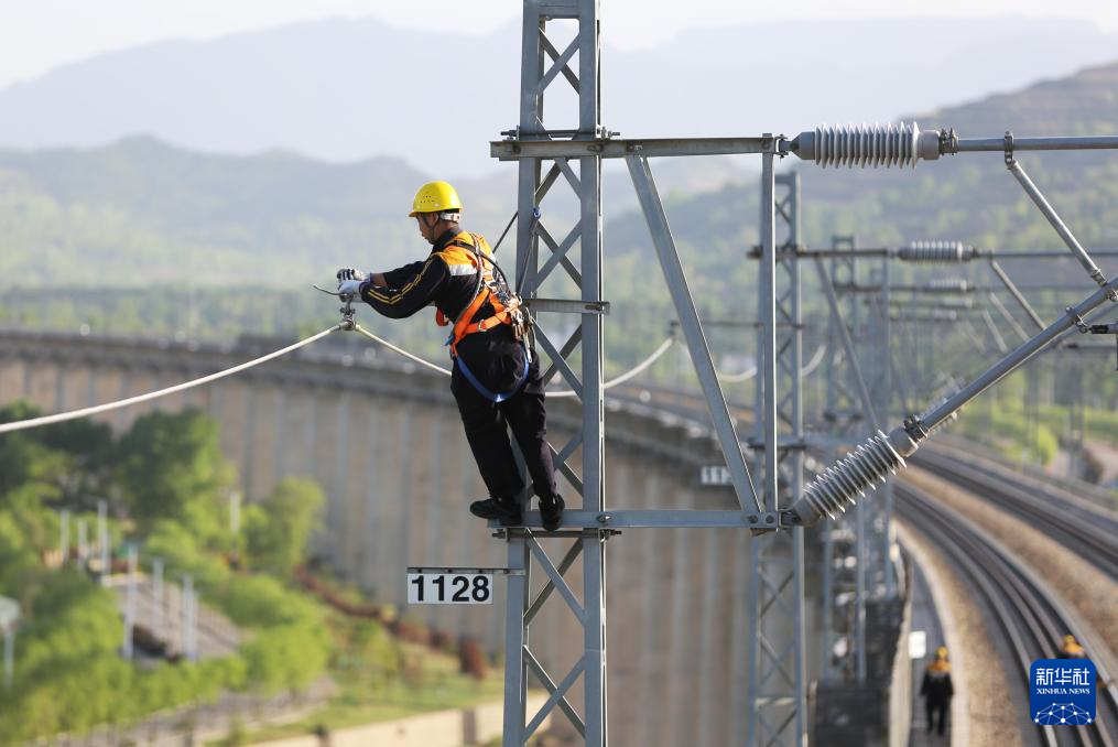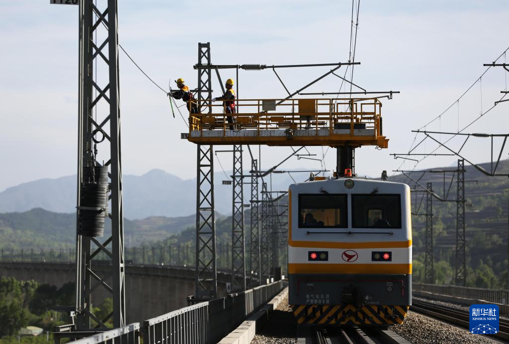 5月13日,铁路职工进行接触网设备集中修作业。