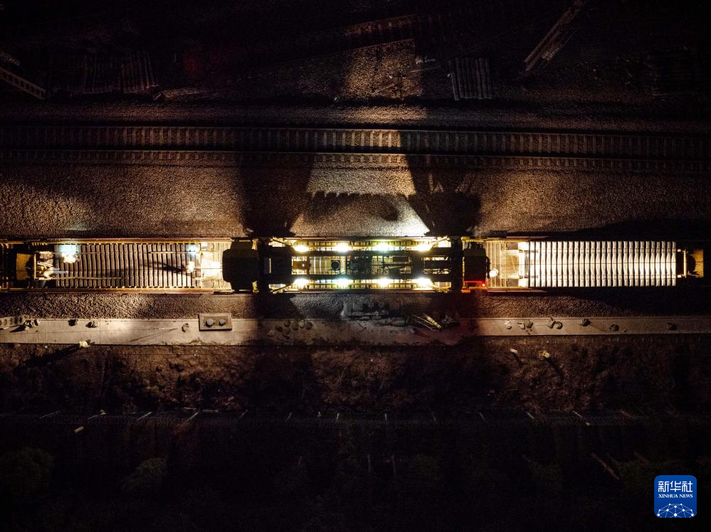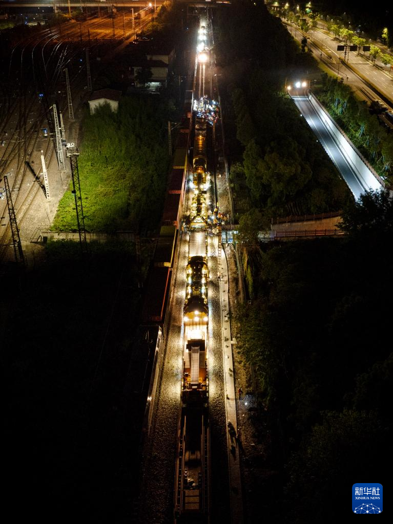 连日来,中国铁路上海局集团有限公司上海工务大修段对沪昆铁路沪杭段进行机械化大修换枕施工。夜色中,全长超过百米的大修列车犹如盘卧在铁路上的“机械长龙”,铁路工人操纵着大修列车对沪昆铁路沪杭段施工范围内16670根老旧的轨枕进行更换,确保铁路运输平稳,旅客出行安全。