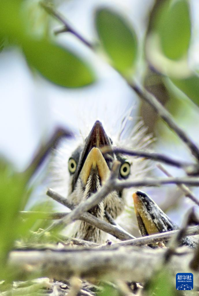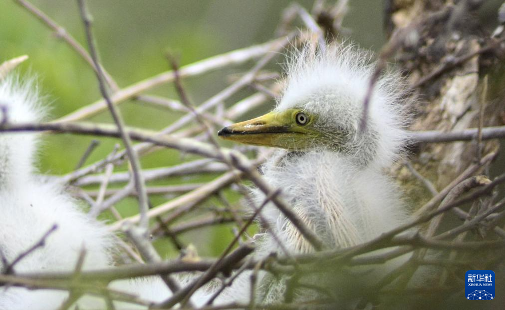 密云水库鸟岛上的白鹭幼鸟(5月14日摄)。