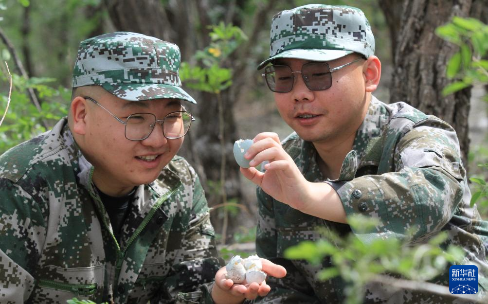 密云水库水生态所的技术人员在鸟岛上观测鸟类繁育情况(5月14日摄)。