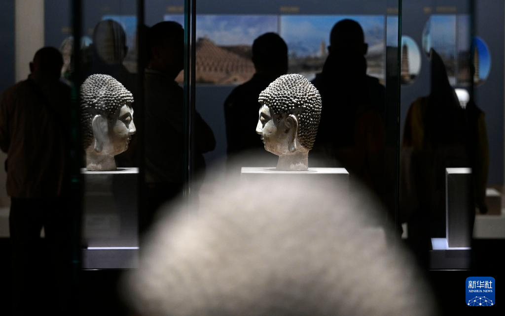 游客在宁夏博物馆观赏文物(5月14日摄)。