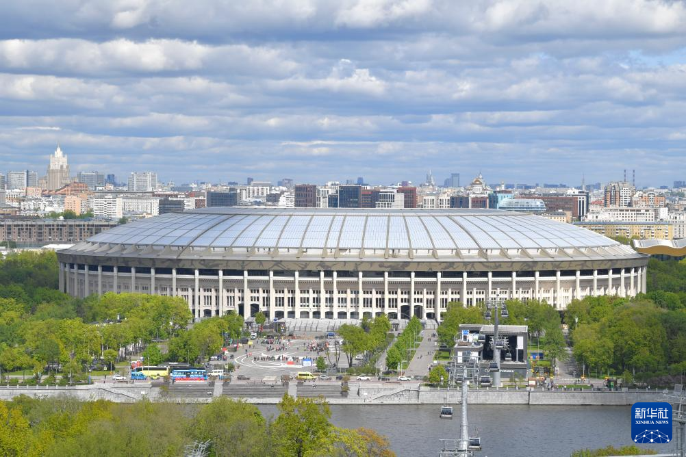 这是5月11日在俄罗斯首都莫斯科拍摄的卢日尼基体育场。