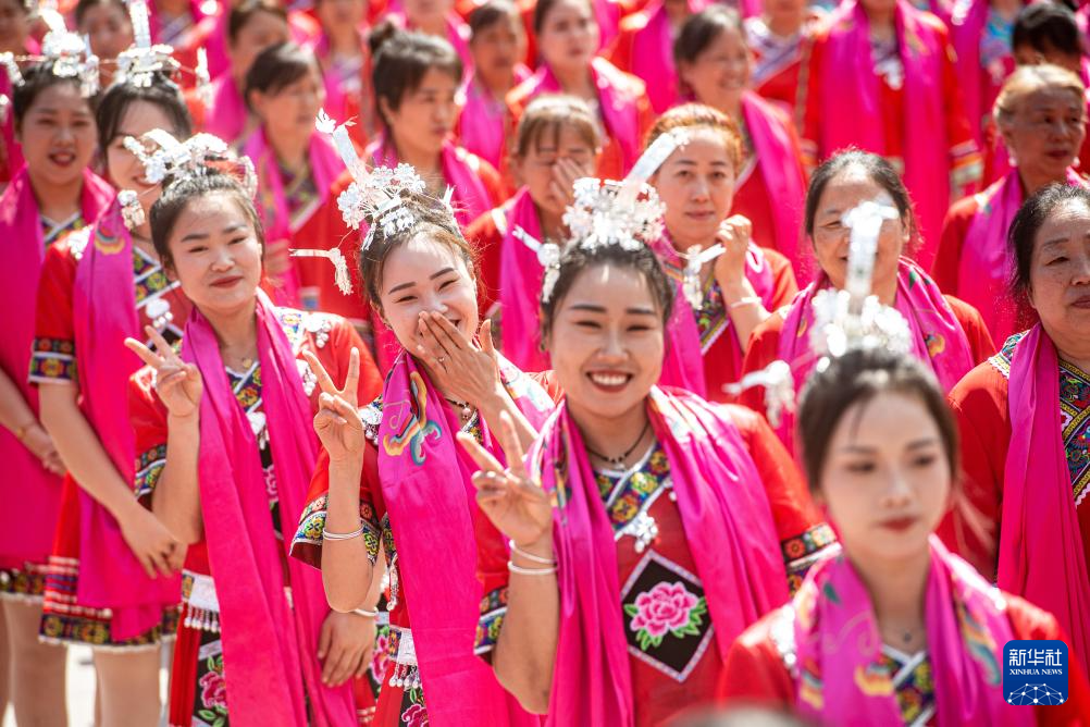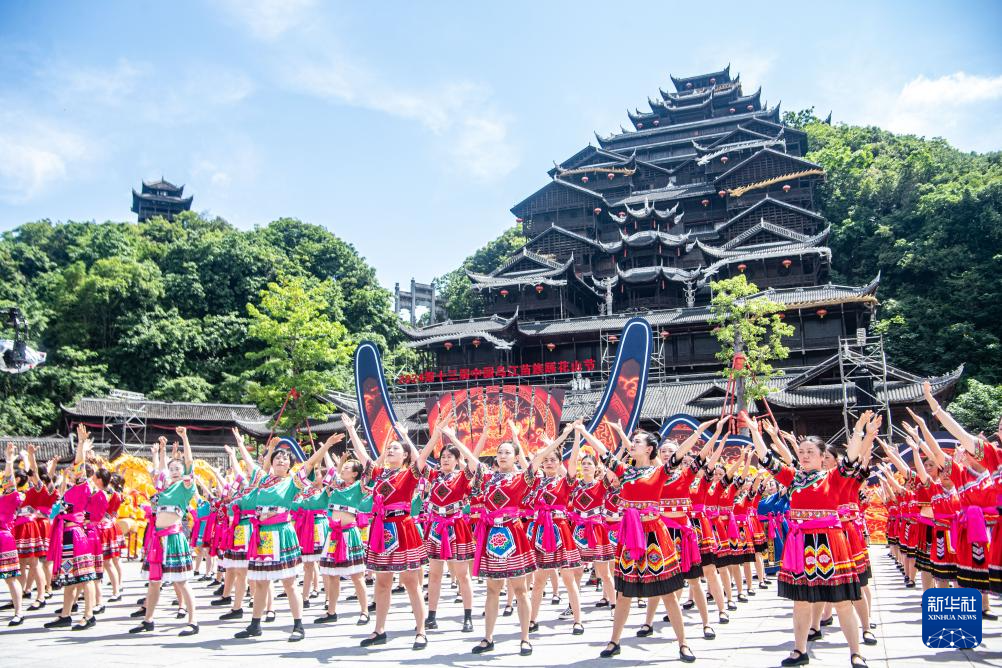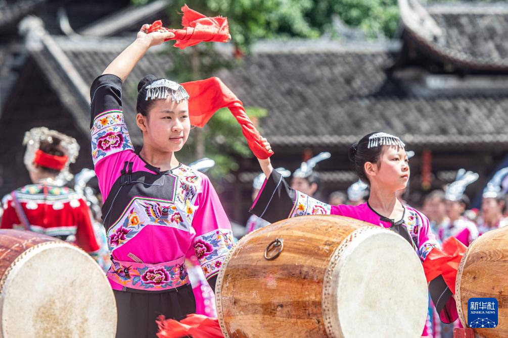5月15日,苗族同胞在重庆市彭水苗族土家族自治县的蚩尤九黎城庆祝传统节日。